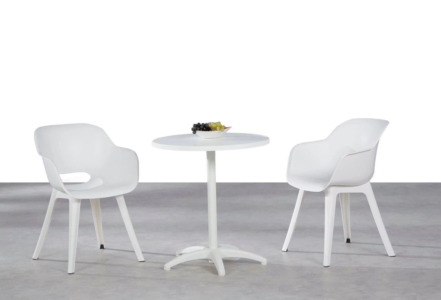 Hochwertiger Vollkunststoff-Sessel im Retro-Look. Perfekt geformte Sitzschale mit stabiler Gestell-Konstruktion. Hergestellt aus 100 % Polypropylen, daher absolut witterungsbeständig. Sitzschale und Gestell sind platzsparend verpackt und leicht montierbar. Maße: Gesamtmaß BxTxH in cm: 57x56x80 / Sitzfläche BxT in cm: 40×42 / Sitzhöhe: 45 cm/ Höhe der Armlehne: 66 cm / Höhe der Rückenlehne: 37 cm