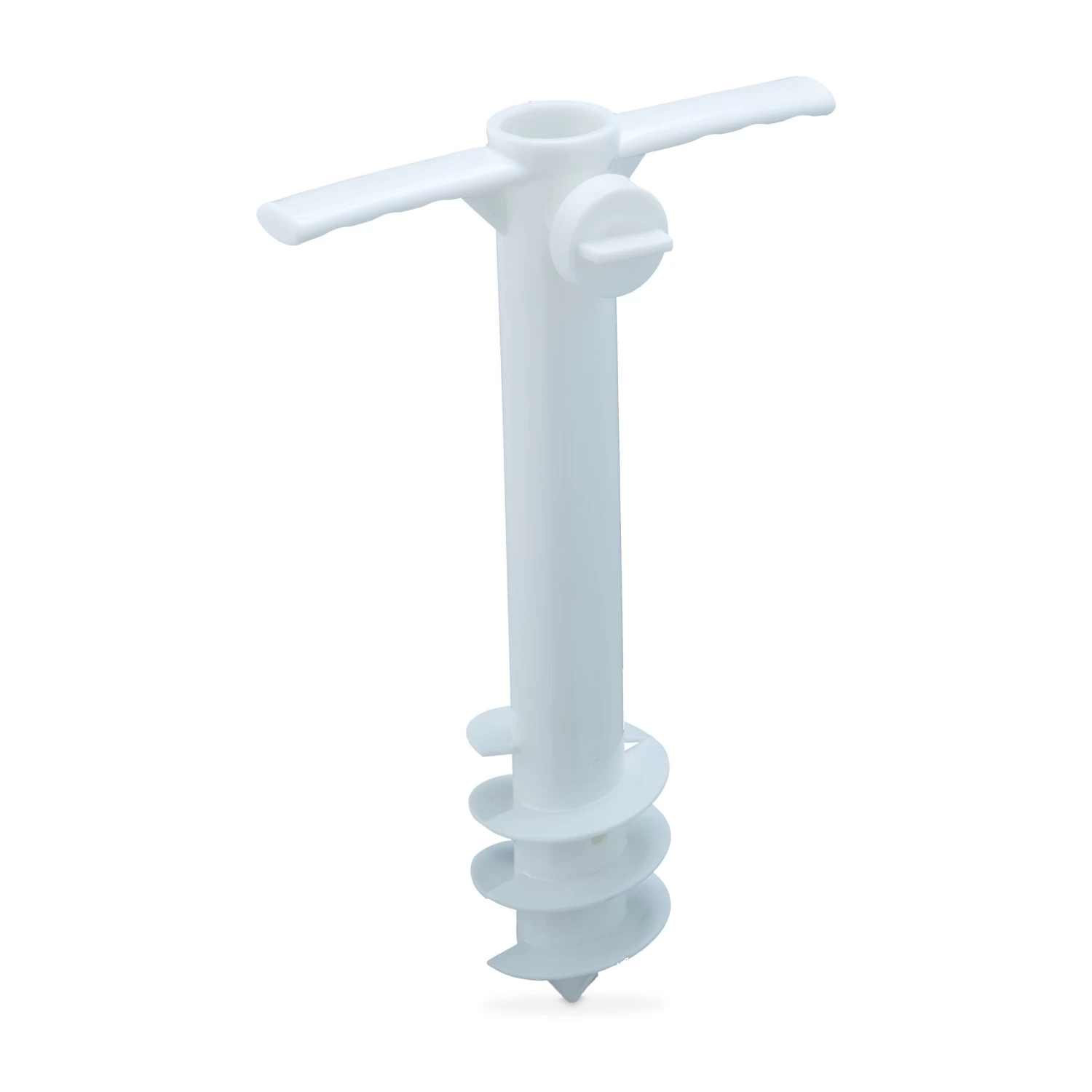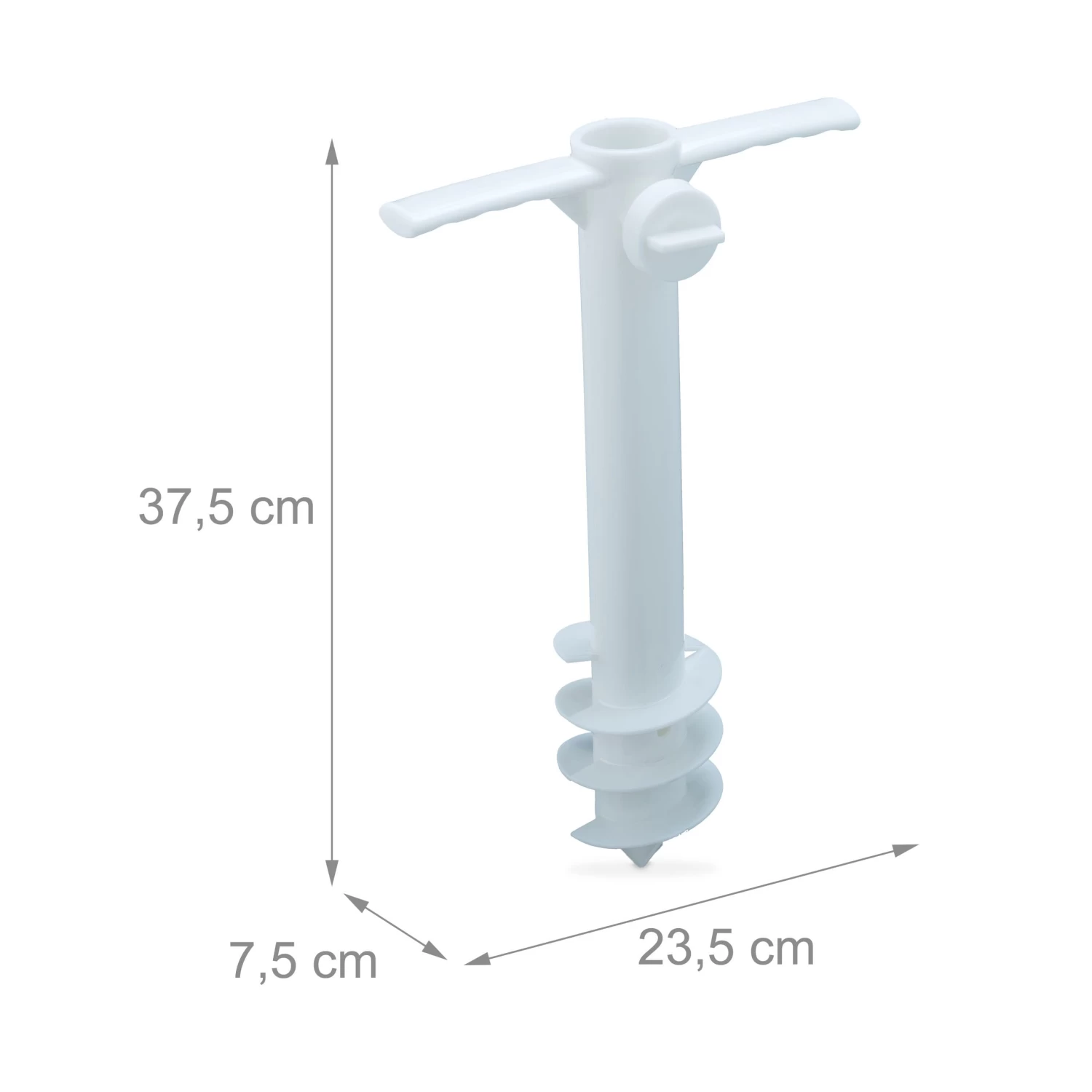 Wenn Du Dich im kühlen Schatten entspannen möchtest, ist die robuste Bodenhülse aus Kunststoff der richtige Mitstreiter. Nutze den Bodendorn als Sonnenschirmhalter oder für die Wäschespinne im Garten. Durch das geringe Eigengewicht ist der Rasendorn auch ideal zum Mitnehmen für Strand, Park oder Camping geeignet. Mithilfe der seitlichen Griffe schraubst Du den Bodendübel einfach fest in den Boden.