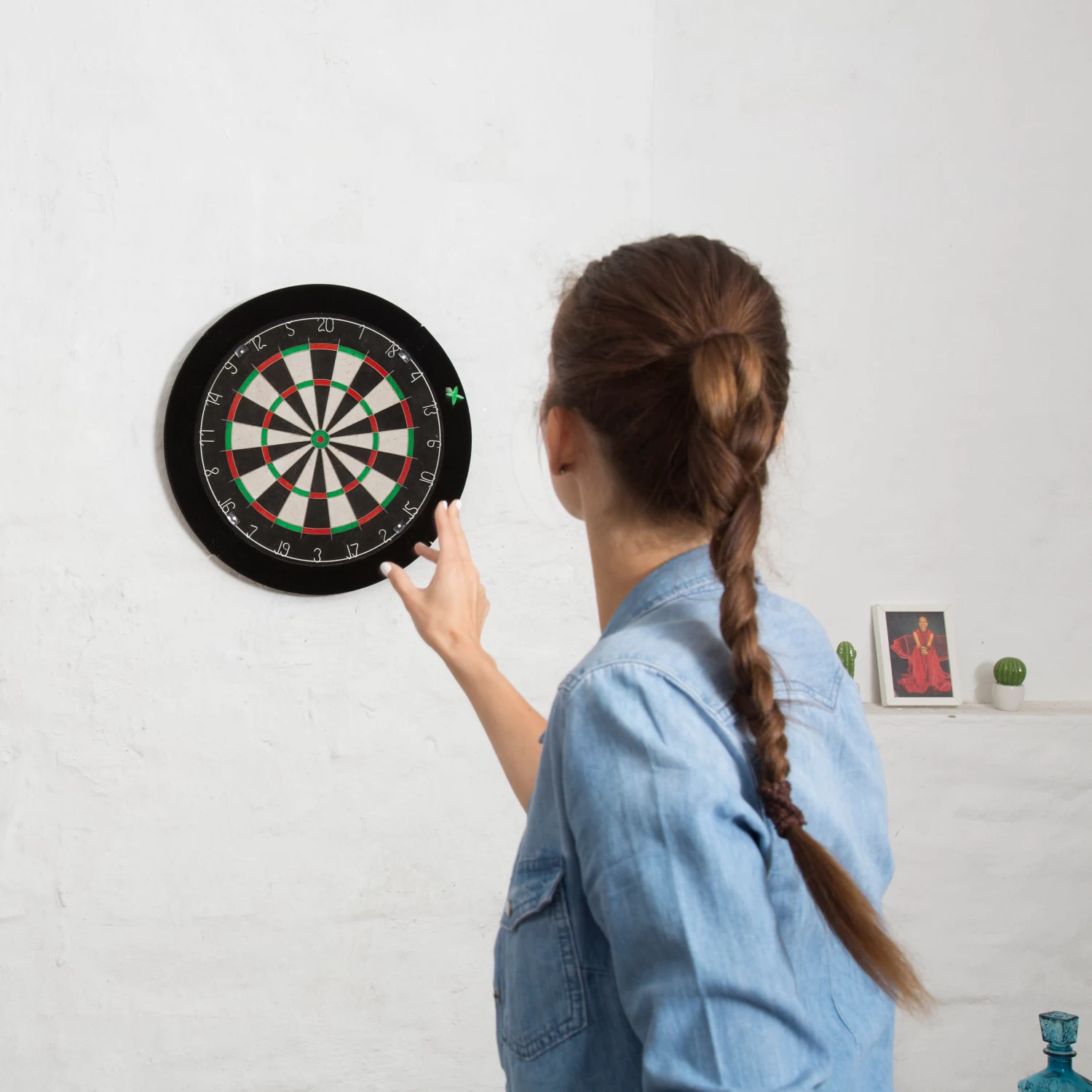 WICHTIG: Unsere Relaxdays Dartschutzringe sind für handelsübliche Dartscheiben mit einem Durchmesser von 45 cm konzipiert. Bitte messen Sie vor dem Kauf den Durchmesser Ihrer Dartscheibe. Verschiedene Marken können verschiedene Außendurchmesser aufweisen. Um die Dartscheibe optimal in den Schutzring einzulegen, ist ein minimaler Kraftaufwand nötig. Nur so erhalten Sie den maximalen Schutz.