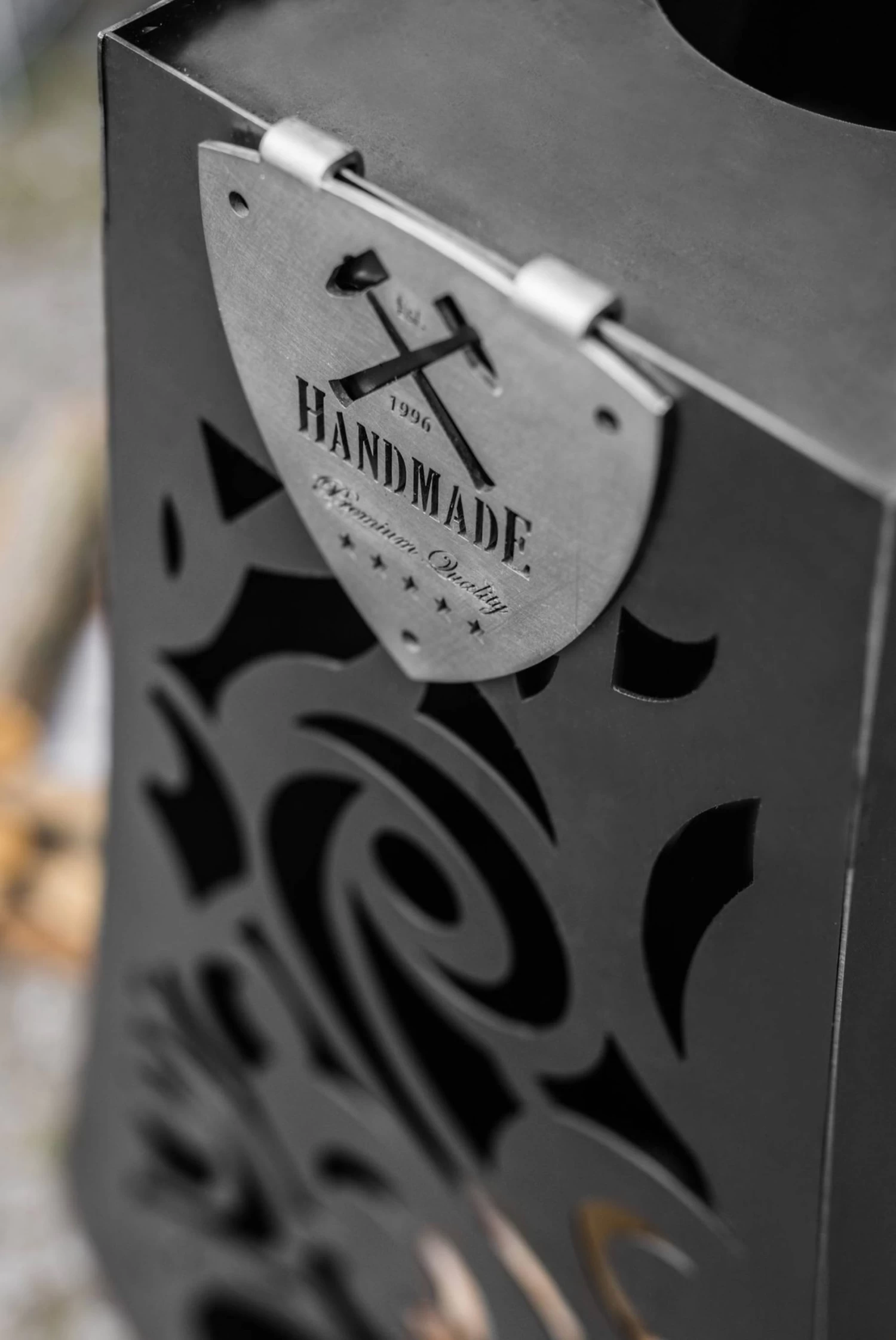 Dank der massiven Konstruktion aus dickem Blech erreicht der Kamin schnell hohe Temperaturen und gibt diese Wärme an die Umgebung ab. Hier können Sie mit Freunden zusammenkommen, sich aufwärmen und gemütlich unterhalten.