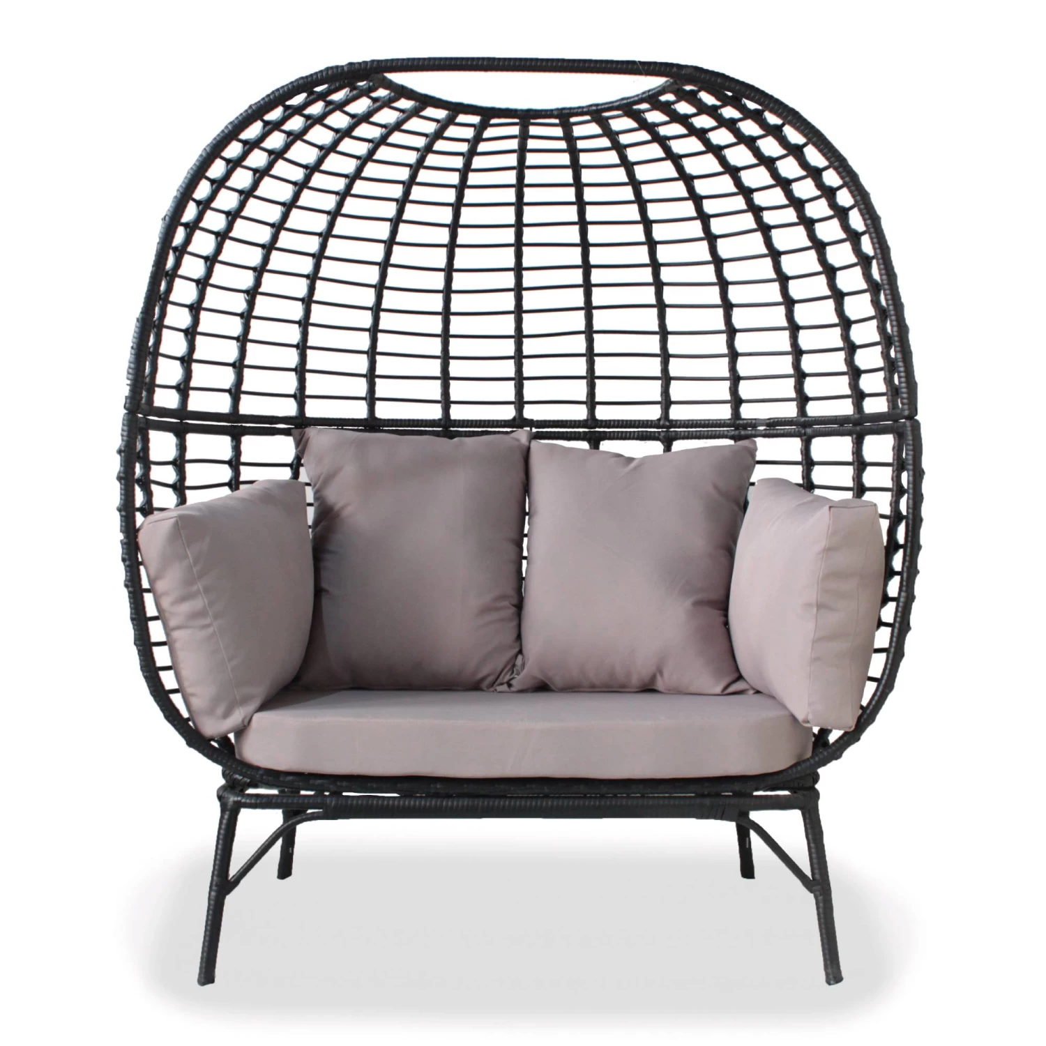 Er besteht außerdem aus einem anthrazitfarbenen Rattan Kunststoff-Geflecht,