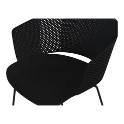 Die Stuhlbeine bestehen aus matt schwarzem Stahl, der in einem einfachen und dennoch ansprechenden Design gestaltet ist.