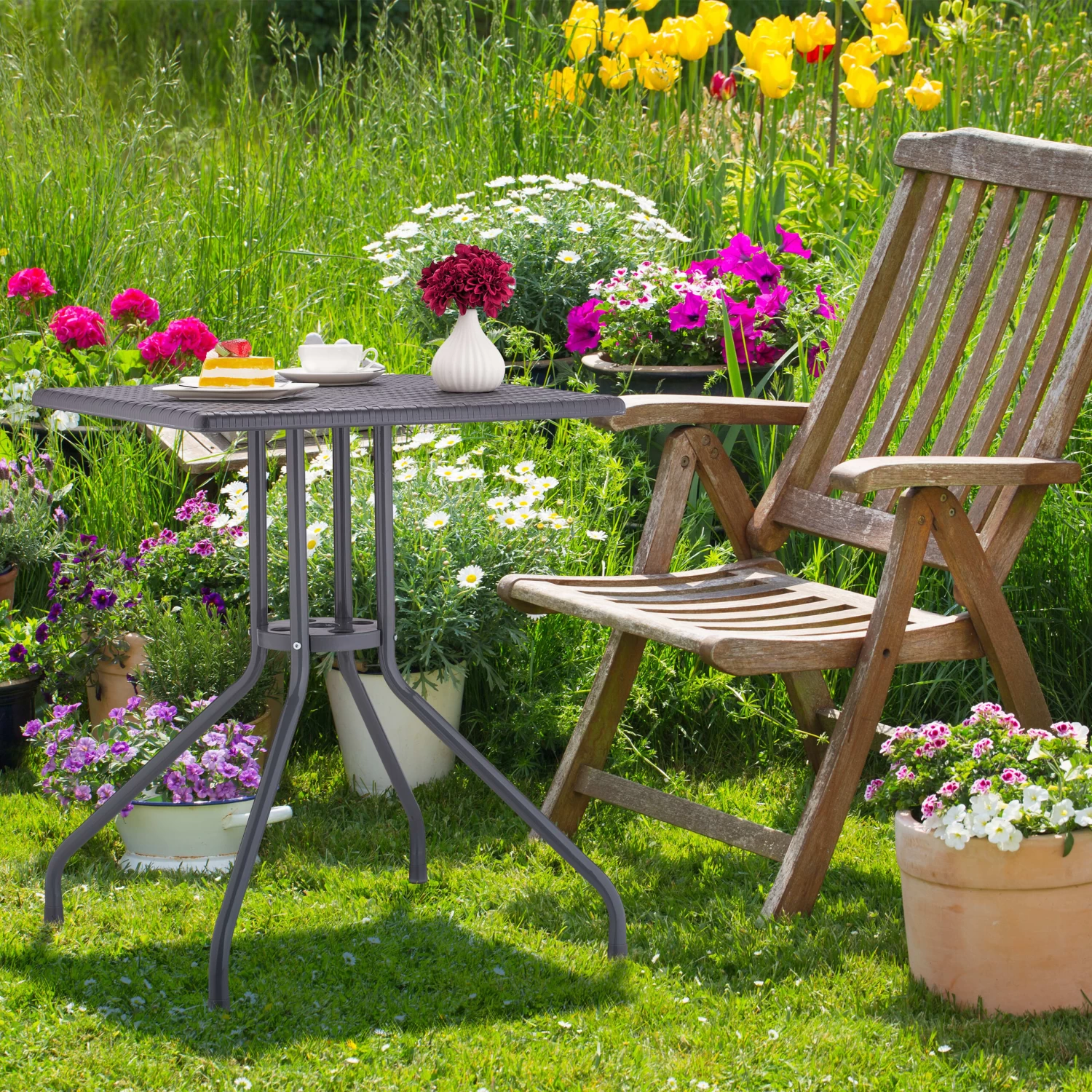 Gartentisch „Rattan-Optik“ In Grau – (B)61 X (H)75 X (T)61 Cm