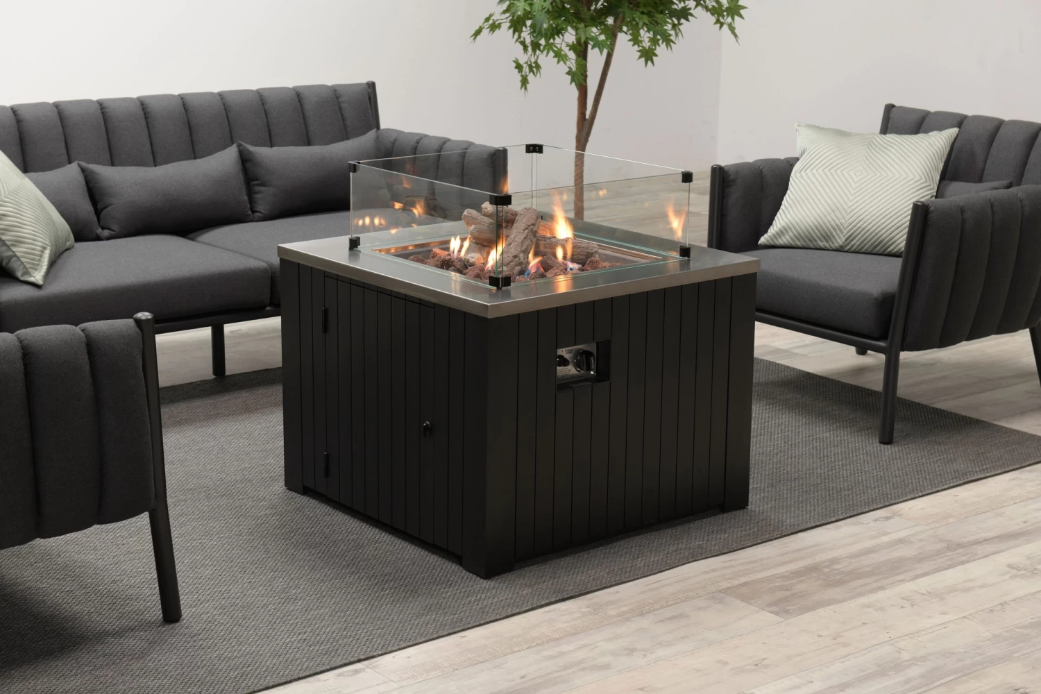 Die schönen Glas Sets werten das ohnehin schon edle Erscheinungsbild der verschieden Feuerstellen noch einmal auf und dienen darüber hinaus als Schutz.