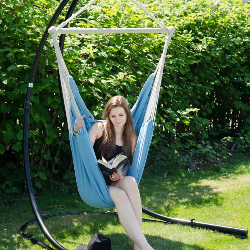 100% NATUR BAUMWOLLE: Die hochwertigen Hängeschaukeln sind aus 100% widerstandskräftiger und unbehandelter 320g/m² Baumwolle, die sich passgenau an den Körper schmiegt und Ihren Rücken entlastet