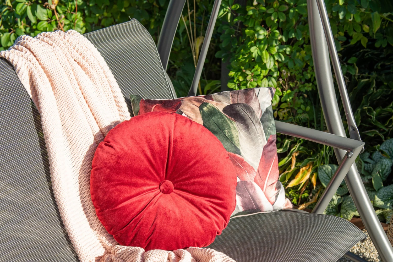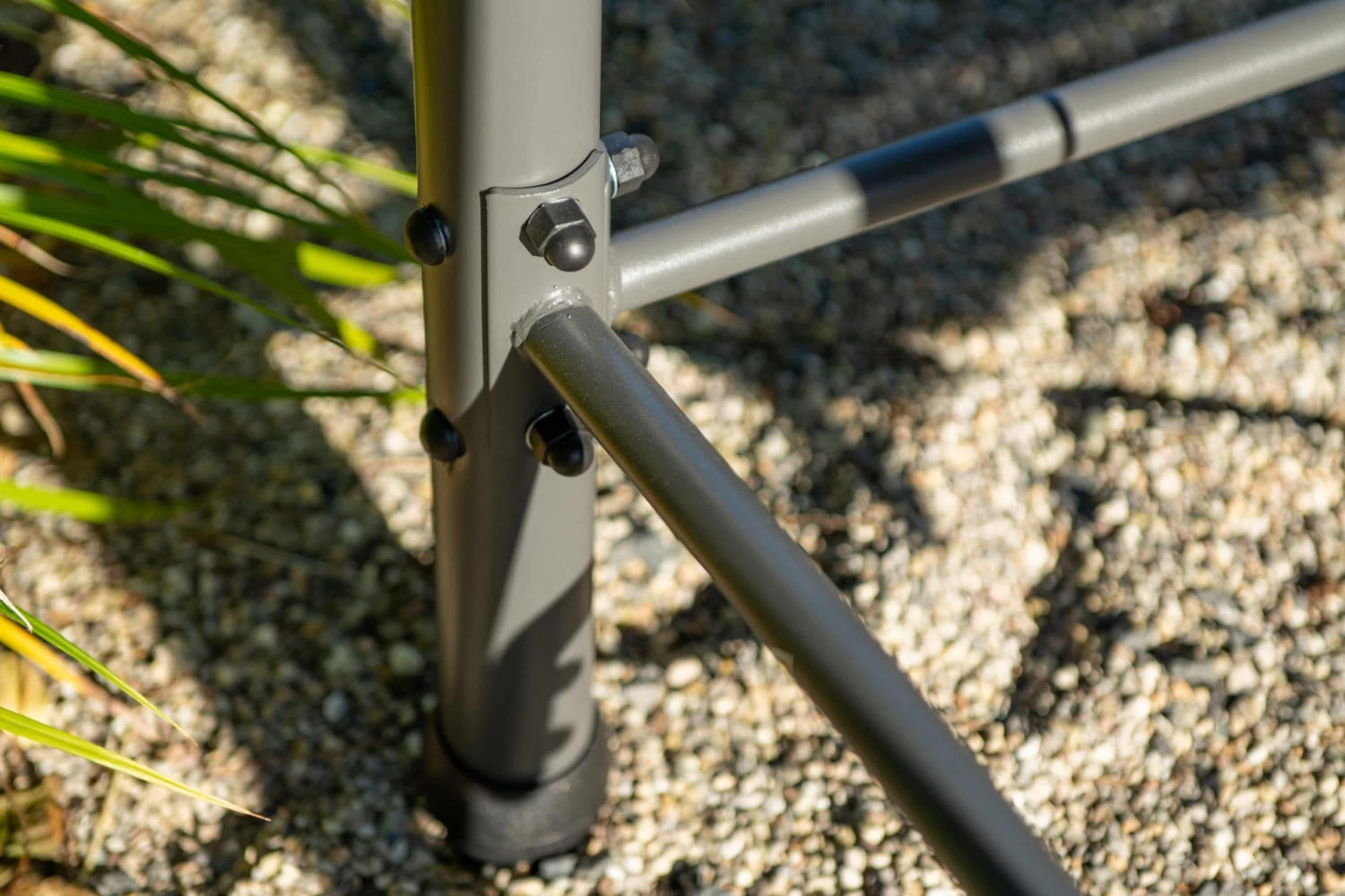 Die Hollywood-Schaukel hat ein stabiles Stahl Gestell, worauf eine schützende Pulverbeschichtung angebracht ist.