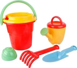 – mit Eimer, Gießkanne, Schaufel, Rechen und Förmchen