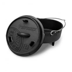 Der aus robustem Gusseisen gefertigte Feuertopf ist der ideale Begleiter für Dich beim Camping-, Outdoor- und Freizeitaktivitäten.