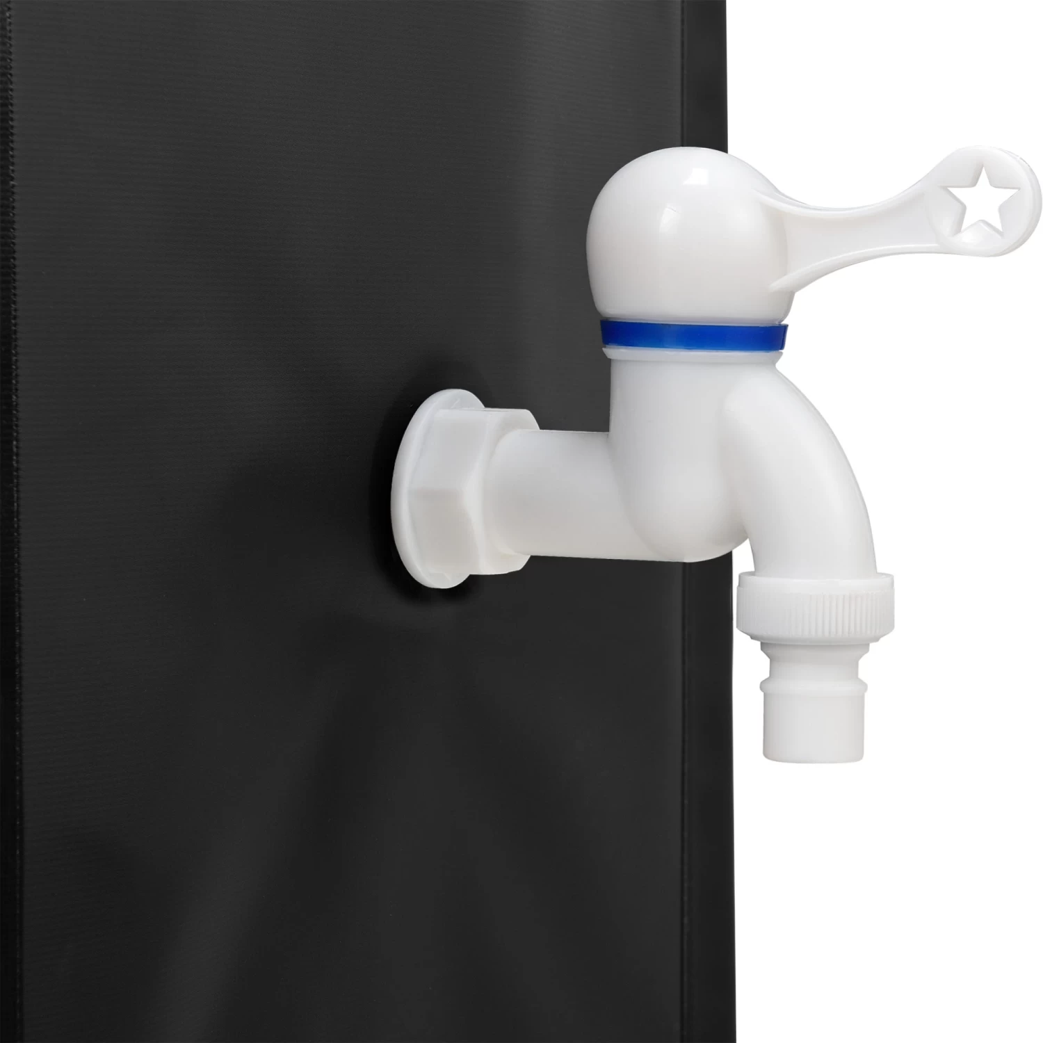 – Hochwertiges, korrosionsbeständiges und UV-resistentes PVC- Wirkungsvolle Reinigung des Wassers, durch Netzfilter- Leichte Öffnung durch Reißverschluss- Einlaufdurchmesser: 10,5cm- Mit 3/4″ PP Auslaufhahn für Schlauchanschluss- ABS Überlaufventil- Weißer Wasserhahn
