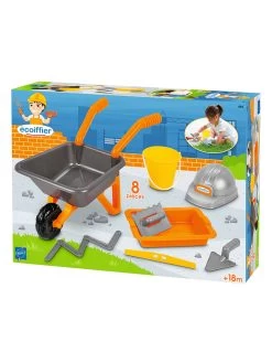 – Inhalt: Schubkarre, Schutzhelm, Maurerkelle, Sandglätter, Zollstock, Wasserwaage und Sandschale