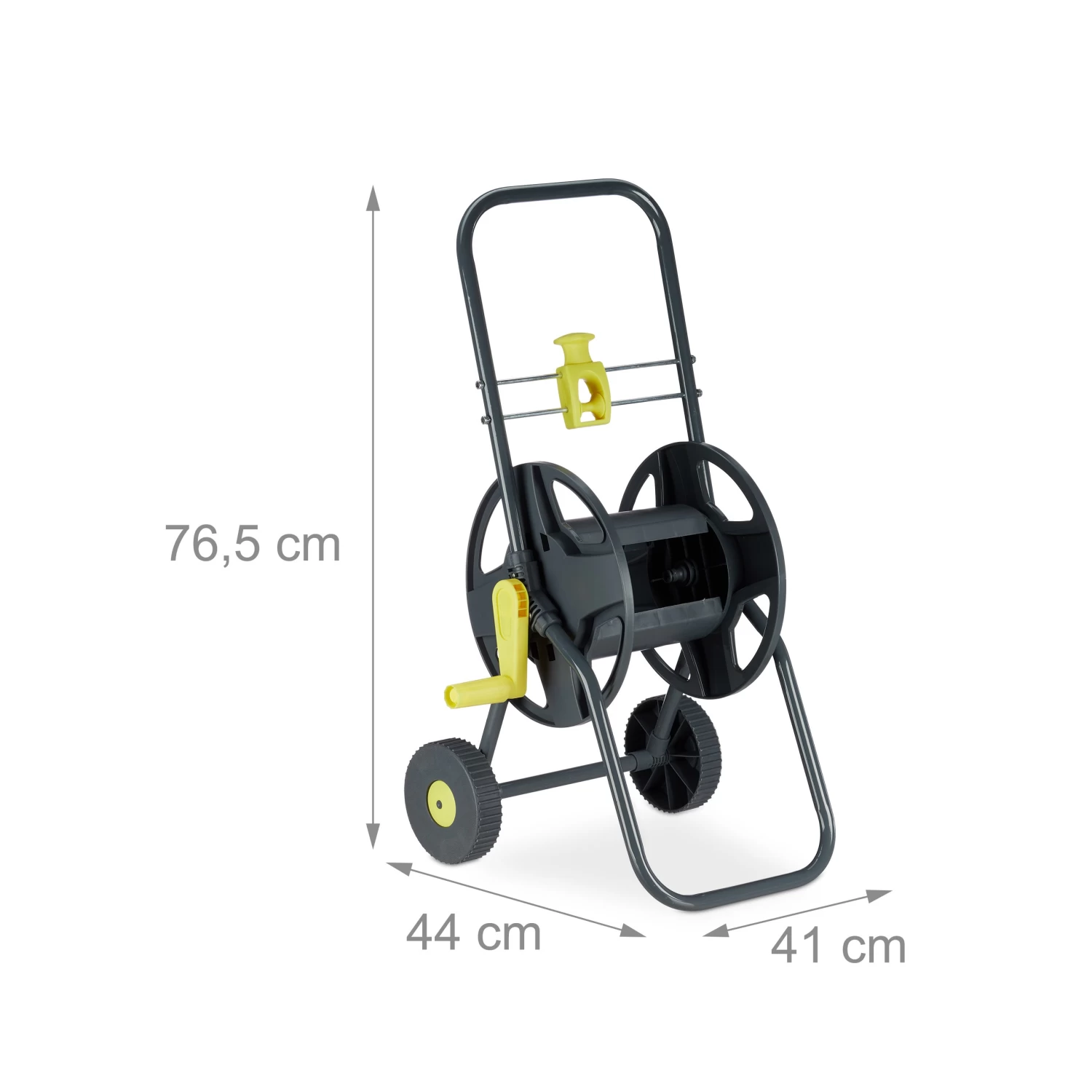 Mit diesem Schlauchwagen sind Sie bestens für die Gartenarbeit ausgerüstet. Wer einen großen Garten hat oder den Wasserhahn nicht in der Nähe des Einsatzortes, der wird für dieses Gartentool dankbar sein. Bis zu 45 m Schlauchlänge passen auf die Schlauchtrommel, die manuell über eine Kurbel betrieben wird. Schieben Sie die Schlauchtrommel mithilfe der Räder an den Ort, an dem gegossen werden soll. Der abgewinkelte Schlauchanschluss verhindert das Knicken Ihres Gartenschlauchs, wodurch Sie Ihre Pflanzen maximal bewässern können. Die Schlauchführung sorgt sowohl beim Transport, als auch nach der Nutzung dafür, dass nicht unnötig Wasser ausläuft. Bei Nichtgebrauch ist der Schlauch dank des Gartenschlauchwagens platzsparend verstaut.