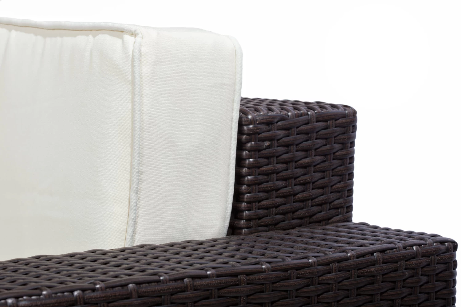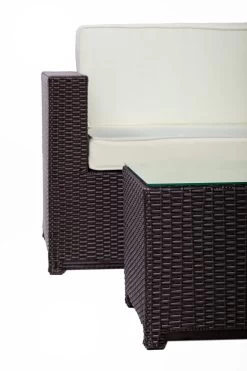Das moderne Gartenmöbel Set aus Polyrattan ist ideal für die Terrasse, den Wintergarten oder auf den Balkon. Die Gartenmöbel sind inkl. Sitz- und Rückenkissen.