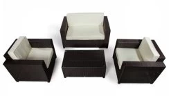 Das Loungemöbel Set Melin ist hergestellt aus wetterbeständigem, hochwertigem Polyrattan Fasern und einem pulverbeschichtetem Aluminiumrahmen.